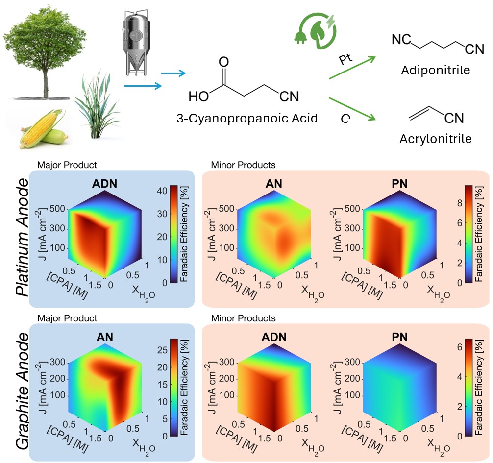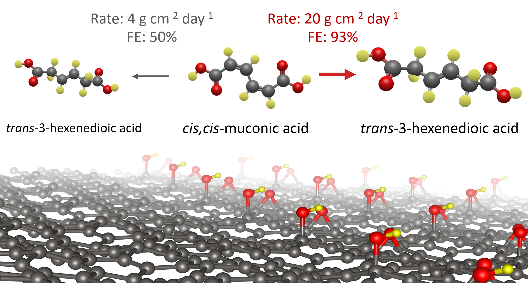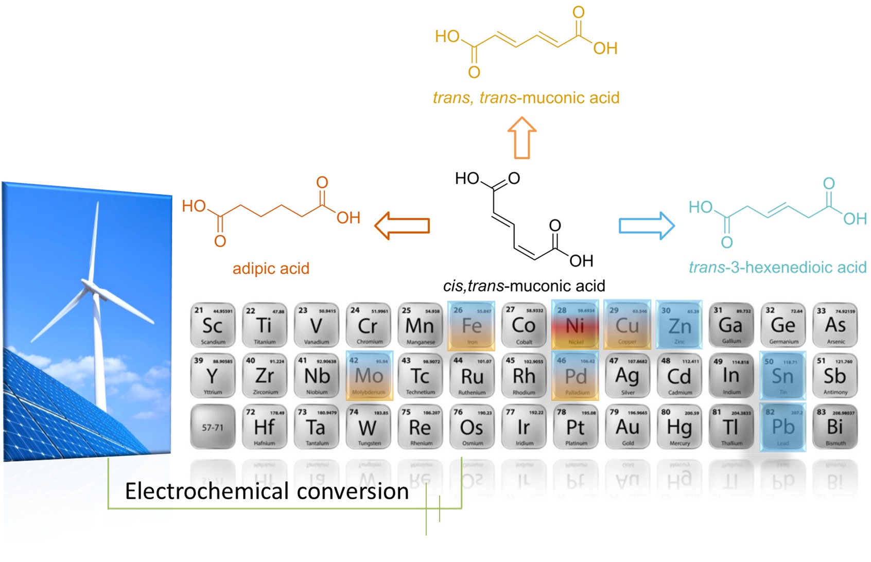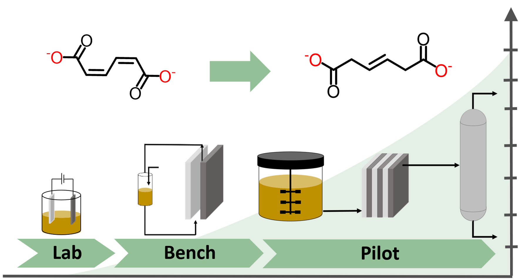 - M. N. Dell’Anna, M. Laureano, H. Bateni, J. E. Matthiesen, L. Zaza, M. P. Zembrzuski, T. J. Paskach, J.-P. Tessonnier, Electrochemical Hydrogenation of Bioprivileged cis,cis-Muconic Acid to trans-3-Hexenedioic Acid: From Lab Synthesis to Bench-Scale Production and Beyond, Green Chem., 2021, 23, 6456-6468. [link]
