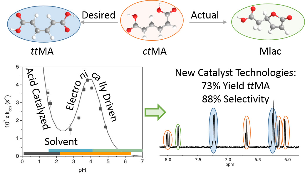- J. M. Carraher, T. Pfennig, R. G. Rao, B. H. Shanks, J.-P. Tessonnier, cis,cis-Muconic Acid Isomerization and Catalytic Conversion to Biobased Cyclic-C6-1,4-Diacid Monomers, Green Chem., 2017, 19, 3042-3050. [link]